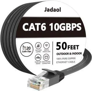 Cat 6 Ethernet Cable 50 ft, 10Gbps Support Cat8 Cat7 Network, Flat RJ45 LAN Patch Cable, High-Speed Wired Internet Cable for Router, Modem, Switch, Gaming Consoles, PC, Streaming Devices, Black