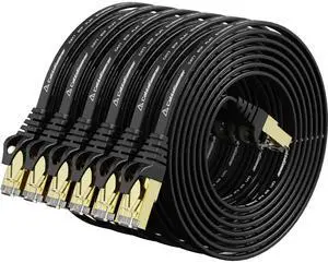Cat 7 Shielded Ethernet Cable 5 ft 6 Pack Black (Highest Speed Cable) Cat7 Flat Ethernet Patch Cables - Internet Cable for Modem, Router, LAN, Computer - Compatible with Cat 5eCat 6 Network