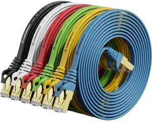 Cat 7 Ethernet Cable 10 ft 6 Pack (Highest Speed Cable) Cat7 Flat Shielded Ethernet Patch Cables - Internet Cable for Modem, Router, LAN, Computer - Compatible with Cat 5e, Cat 6 Network