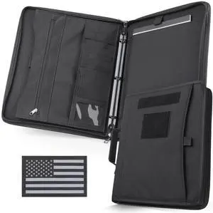 Portfolio Padfolio Binder Detachable 3-Ring Binder Planner, Zip Tactical Notebook Cover with A4 Letter Paper, Multi-Storage Organizer Handle Bag for Out-Work, Travels, Office & School