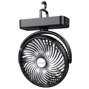 10000mAh Battery Operated Camping Fan with LED Light-7 inch USB Fan with Hanging Hook for Tent Car RV Hurricane Emergency Outage