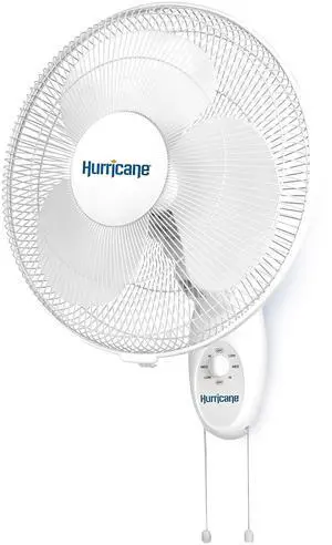 16" Supreme Oscillating Wall Mount Fan w/ 3 Quiet Speeds, White - Corded Electric Air Cooling Unit w/ Easy Pull Cord Controls for Homes, Greenhouses, Garages, Workshops & Gyms