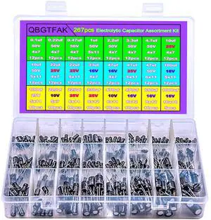 Electrolytic Capacitor, QBGTFAK 24Value 267pcs(0.1uF1000uF) Aluminum Electrolytic Capacitors Assortment Kit for Computer Motherboard, TV, Speaker