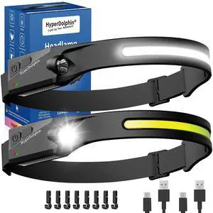 Headlamp Rechargeable LED (2 Pack) 230° Wide Beam, USB-C Lightweight Head Lamp, Long Runtime, Water-Resistant for Camping, Hiking, Running, Fishing, Repair Work