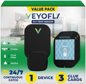 Fly Trap Indoor, Plug in Flying Insect Trap, Effective Fruit Fly Traps for Indoors, House Indoors Fly Trap for Fruit Flies, Gnats, Moths and Other Flying Houseflies(1 Device + 3 Pair of Glue Cards)