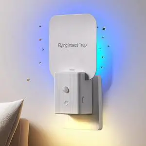 Fly Trap Indoor- 2 in 1 Plug in Fly Trap with Auto Night Light, Fruit Fly Traps for Indoors, Gnat Trap, Bug Light Trap for Mosquitoes, Flies, Fruit Flies, Moths (1 Device + 5 Glue Cards)