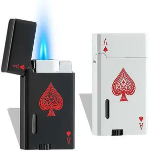 CFTGET Ace Classic Butane Torch Lighter, Refillable Card Lighter with Double Jet Flame and Visible Window, Ideal Gift for Men and Women, 1-Year Warranty, Without Butane(Black+White)
