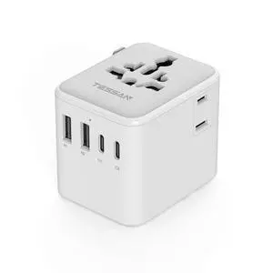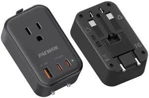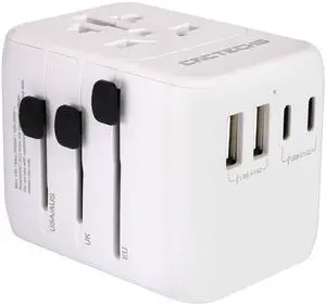 Universal Travel Adapter, Power Adapter Worldwide with Extra 2 Prong AC Outlet, 4 USB Ports (2 USB C), International Plug Adaptor for US to Europe Italy UK Australia Ireland (Type C G A I)