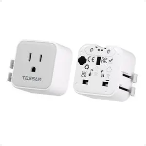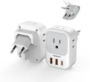 2 Pack European Travel Plug Adapter (No Voltage Conversion), TESSAN US to Europe Plug Adapter with 4 Electrical Outlets 3 USB Ports (2 USB C), Type C Power Adaptor for EU Italy Iceland Spain