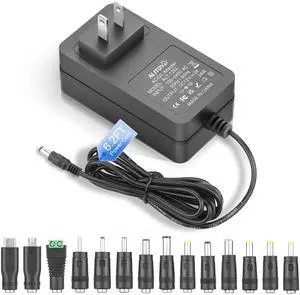 12V Power Supply 2A Universal AC Adapter 100-240V 50-60HZ to DC 12 Volt Power Cord 6.5FT with 14 Tips for LED Light Digital Piano Keyboard CCTV Camera Router DVD Player