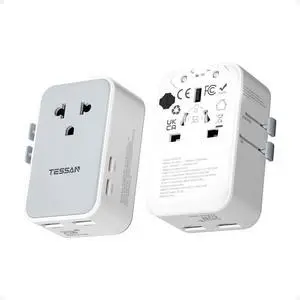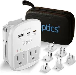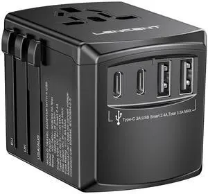 Universal Travel Adapter, Power Adapter Worldwide with Extra 2 Prong AC Outlet, 4 USB Ports (2 USB C), International Plug Adaptor for US to Europe Italy UK Australia Ireland (Type C G A I)
