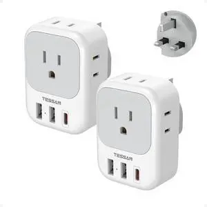 UK Adapters for Travel 2 Pack, Type G US to UK Plug Adapter with 4 Outlets 3 USB Charger(1 USB C PD 20W), Power Adaptor for USA to Ireland Scotland Dubai Hong Kong England British Kenya London