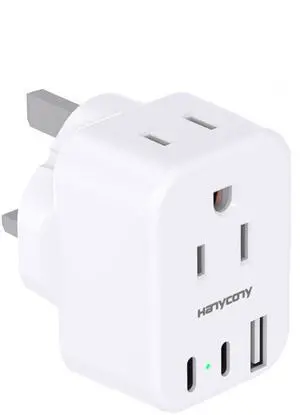 US to UK Plug Adapter, Type G Travel Converter with 3 USB Charger(1 USB C Port), 4 Outlets Power Adaptor for USA to Qatar Ireland Hong Kong England Scotland Kenya Dubai London British
