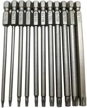 Long Torx Security Head Screwdriver Drill Set 1/4 Inch Hex Shank T6 T7 T8 T9 T10 T15 T20 T25 T27 T30 T40 11 Pieces 4 Inch Length S2 Steel Torx Screwdriver Bit Set (11pcs Torx Head 100mm)