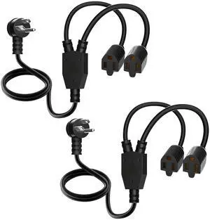 Features: This 2FT-2Pack power extension cord is made by Elecan and features a 45 Degree Flat Plug style with material. It supports a voltage of 125 volts_of_alternating_current and an input current of . The cable is black in color and is UL listed. It comes with a Male-to-Female connector and does not require batteries.