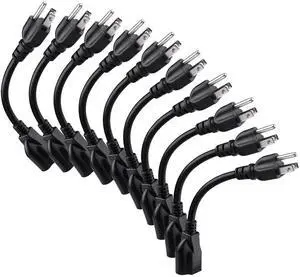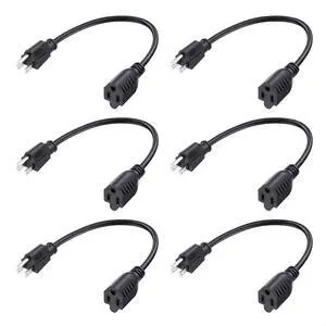 Features: This 1FT-5pc power extension cord is made by POWGRN and features a style with copper material. It supports a voltage of 125 volts_of_alternating_current and an input current of . The cable is Black in color and is UL listed. It comes with a Male-to-Female connector and does not require batteries.