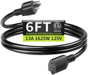 Features: This 6FT power extension cord is made by Seeklyze and features a style with material. It supports a voltage of 125 volts_of_alternating_current and an input current of . The cable is Black in color and is UL listed. It comes with a Male-to-Female connector and does not require batteries.
