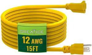 Features: This 15 FT power extension cord is made by GREATIDE and features a style with material. It supports a voltage of 125 volts and an input current of . The cable is Yellow in color and is UL listed. It comes with a connector and does not require batteries.