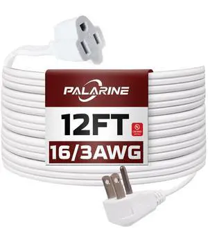 Features: This 12 FT power extension cord is made by PALARINE and features a style with material. It supports a voltage of 125 volts and an input current of . The cable is White in color and is UL listed. It comes with a Male-to-Male connector and does not require batteries.