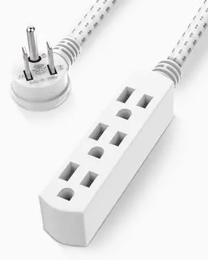 Features: This 1.5FT power extension cord is made by PLUGTUL and features a style with fabric material. It supports a voltage of 125 volts and an input current of . The cable is White in color and is UL listed. It comes with a Male-to-Female connector and does not require batteries.