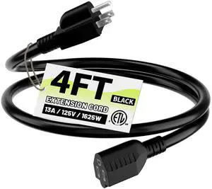 Features: This Black 1 feet power extension cord is made by LBSC and features a style with material. It supports a voltage of 125 volts and an input current of 15 amps. The cable is Black in color and is UL listed. It comes with a Male-to-Female connector and does not require batteries.