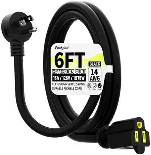 Features: This 6FT power extension cord is made by Vockjour and features a 1Pack style with material. It supports a voltage of 125 volts_of_alternating_current and an input current of . The cable is Black in color and is UL listed. It comes with a Male-to-Female connector and does not require batteries.