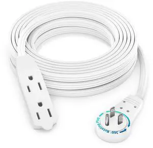 Features: This 15FT power extension cord is made by Adoreen and features a Angled to Straight style with material. It supports a voltage of 125 volts and an input current of . The cable is White in color and is UL listed. It comes with a Male-to-Female connector and does not require batteries.