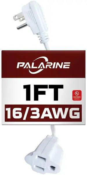 Features: This 1 FT power extension cord is made by PALARINE and features a style with material. It supports a voltage of 125 volts and an input current of . The cable is White in color and is UL listed. It comes with a Male-to-Female connector and does not require batteries.