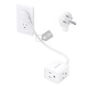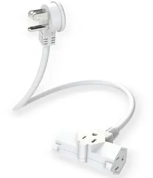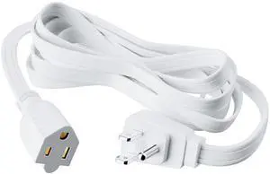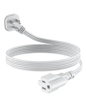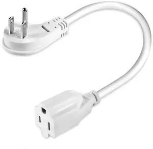 Features: This 1.5FT power extension cord is made by NUTICT and features a Rightward 3 Prong style with Plastic material. It supports a voltage of 125 and an input current of . The cable is White in color and is UL listed. It comes with a Male-to-Female connector and does not require batteries.