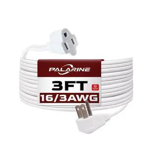 Features: This 3 FT power extension cord is made by PALARINE and features a style with material. It supports a voltage of 125 volts and an input current of . The cable is White in color and is UL listed. It comes with a Male-to-Female connector and does not require batteries.