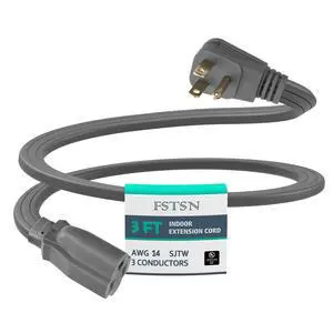 Features: This 3 ft power extension cord is made by FSTSN and features a style with copper material. It supports a voltage of 125 volts and an input current of . The cable is Grey in color and is UL listed. It comes with a Male-to-Female connector and does not require batteries.