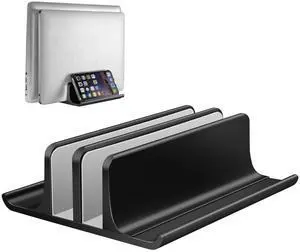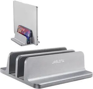 Aluminum Vertical Laptop Stand Dock Holder, Adjustable Slot Width 12-42mm, Space-Saving Upright Storage for MacBook and Laptops