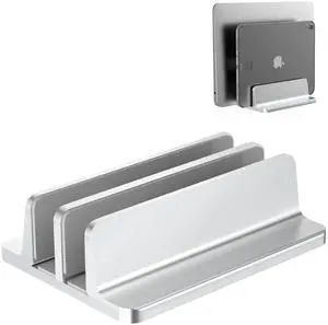 New Vertical Laptop Stand, Adjustable 2 Slot Aluminum Desktop Holde(Up to 17.3 inch), Fits All MacBook/Microsoft Surface/HP/Dell/ChromeBook/iPad and Gaming Laptops (Silver)