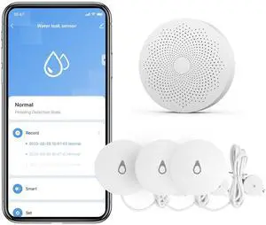 Water Leak Detector Kit: Hub and Water Leak Sensor 3-Pack Set, Smart Water Sensor Alarm, Water Detector Alarm, 330ft Transmission Range, for Kitchen, Basement, Bathroom, White