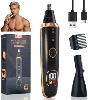 2 in 1 Nose Hair Trimmer for Men - LED Power Display, 16000RPM Motor, Electric Ear & Eyebrow Grooming Kit, Nose Hair Cutter & Remover, Face & Body Clipper, Gift for Male Men Christmas Father's Day