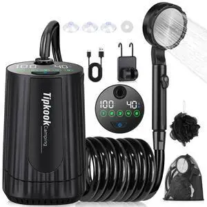 Portable Shower for Camping Essentials: 10000mAh Rechargeable Battery Powered Shower, IPX8 Waterproof Camp Shower Pump, 5-Speed Outdoor Shower with LED Display, Camping Gifts for Men, Dog Bath, Hiking
