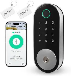 Built-in WiFi Fingerprint Smart Deadbolt with Keypad Keyless Entry Lock for Home, Airbnb, Rental, Kids/Seniors, Remote App Access, Auto Lock, DIY Setup (No Gateway Needed), Alexa & Google Compatible