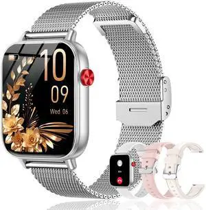 Smart Watch for Women, 1.85" HD Smartwatch Compatible iPhone/Samsung/Android (Answer/Make Calls), 100+ Sport Modes Fitness Tracker with Heart Rate/Sleep/SpO2 Monitor, IP68 Waterproof, with 2 Bands