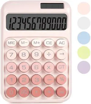 Mechanical Switch Calculator with Big Buttons, Calculators Desktop, 12 Digits, Solar Battery Power, Desk Calculator, Large LCD Display, Cute Pink Calculators for Teachers Students Basic Office