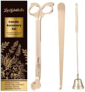 3 in 1 Candle Accessory Set,Large Candle Wick Trimmer Snuffer Extinguisher Dipper with Long Handle,Polished Stainless Steel Candle Wick Scissor Cutter Clipper Kit (Golden)