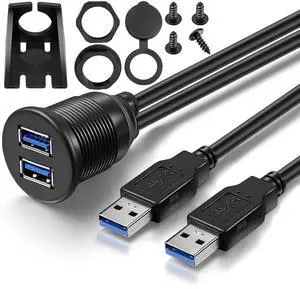 2 Ports Dual USB 3.0 Male to USB 3.0 Female AUX Flush Mount Car Mount Extension Cable for Car Truck Boat Motorcycle Dashboard Panel -(6 Feet)