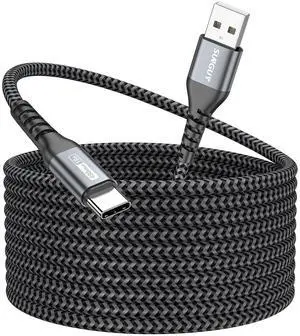20 FT USB C Cable Long, 18W Fast Charging USB A 2.0 to USB-C Charge Cord 20 Foot 480Mbps Data Transfer Type C Black Braided for PS5, Xbox, iPhone 17/16/15, Galaxy S25/24/23 Andriod Phone etc.