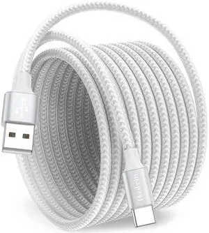 White USB A to USB C Cable 15ft, Extra Long USB C Cable Fast Charging, USBC Charger Cord for iPhone 17 Air 16 15 Pro Max Plus, for Samsung Galaxy S21 Note 10