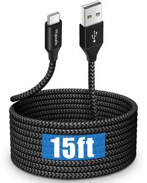 Long USB C Cable 15ft, USB 2.0 to USB Type C Cable Fast Charging Nylon Braided Charger Cord Compatible with Samsung Galaxy Note, LG, Moto, Google, Sony, Switch, Camera and Other USB-C Device