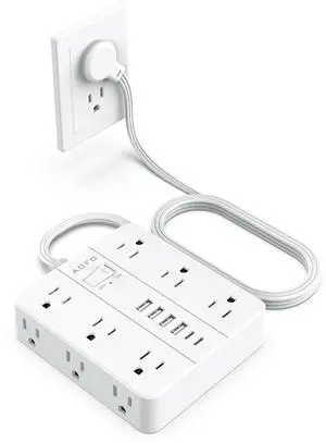 AOFO Flat Power Strip, Flat Wall Plug Extension Cord with Multiple Outlets, Surge Protector, 12 AC Outlets, 6 USB (2 USB-C) Ports, 5FT Cord, for Home Office, Dorm Room Essentials