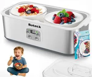 Yogurt Maker - Stainless Steel Yogurt Makers with Adjustable Time & Temp ControlAutomatic Shut-Off & Constant Temper for Homemade Greek, Probiotic Yogurt, BPA-Free 2 Yogurt Bowls (2 Quart)