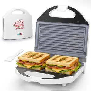 Ceramic Mini Panini Press Grill Sandwich Maker, Mini Sandwich Press, Panini Maker, Sandwichera Electrica, Panini Grill, Toaster Press, Grill Burgers or 2 Slices Sandwiche at a Time, White
