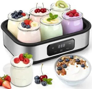 Yogurt Maker with Adjustable Temperature & 48H Timer - 6 Glass Jars for Homemade Probiotic Yogurt, Perfect Gift for Family Wellness & Healthy Diet Lovers