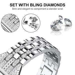Compatible with Versa 2/Versa Lite/Versa, Replacement Metal Rhinestone Bling Bracelet Wristband, Silver