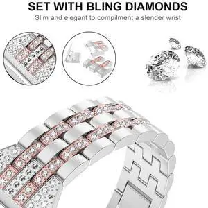 Compatible with Versa 2/Versa Lite/Versa, Women Replacement Metal Rhinestone Bling Bracelet Wristband, Silver with Rose Gold